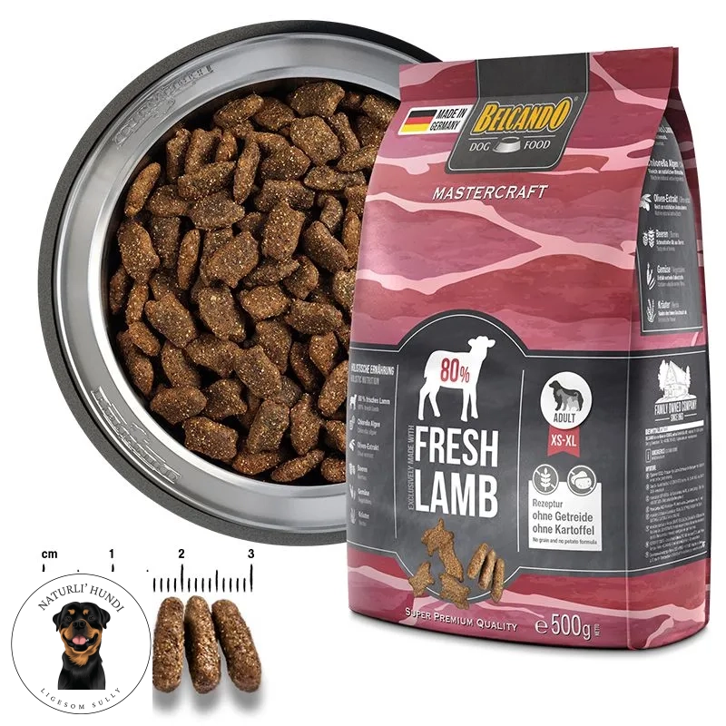 • 80% frisk lammekød, der bruges ikke kødmel.