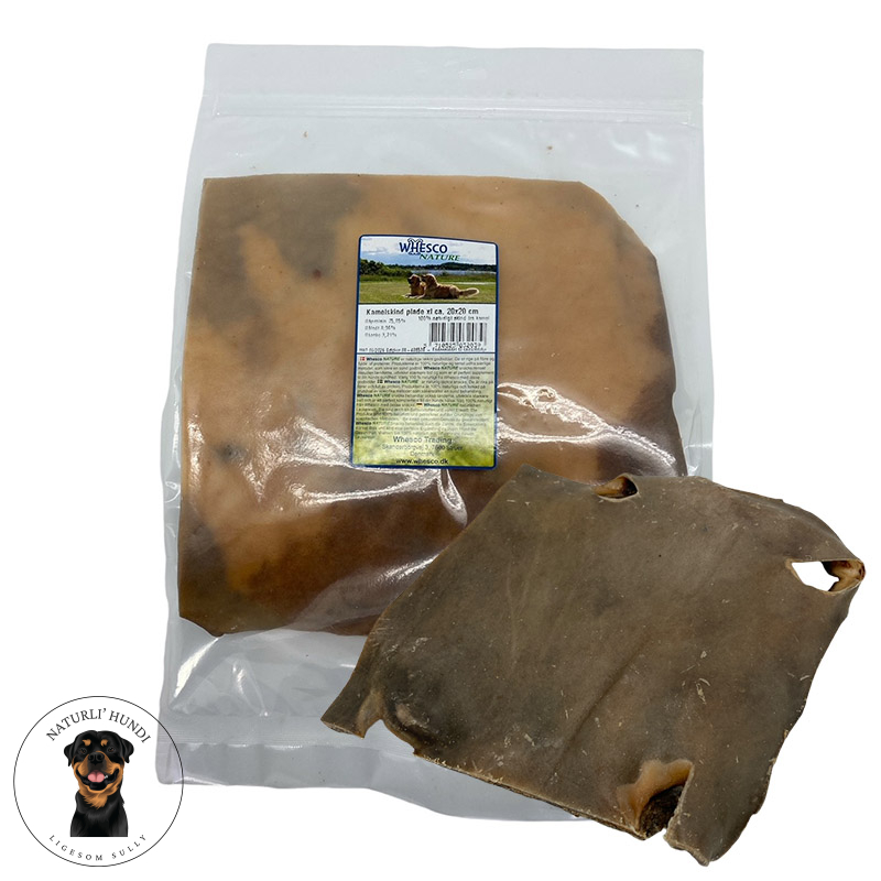 Forkæl din hund med en Whesco Kamelskind Plade XL – en naturlig, sund og langtidsholdbar snack lavet af 100% lufttørret kamelskind 🐫✨