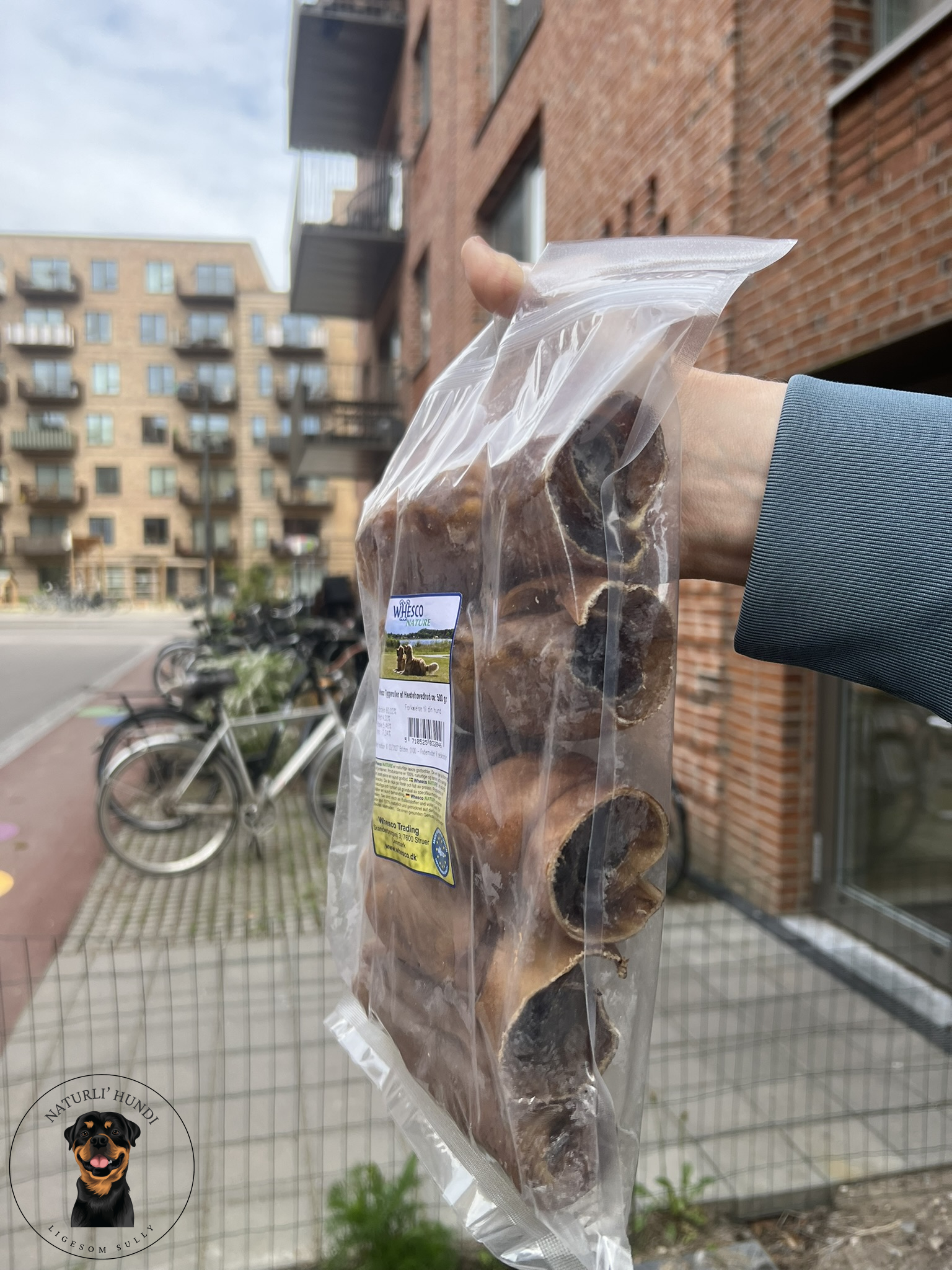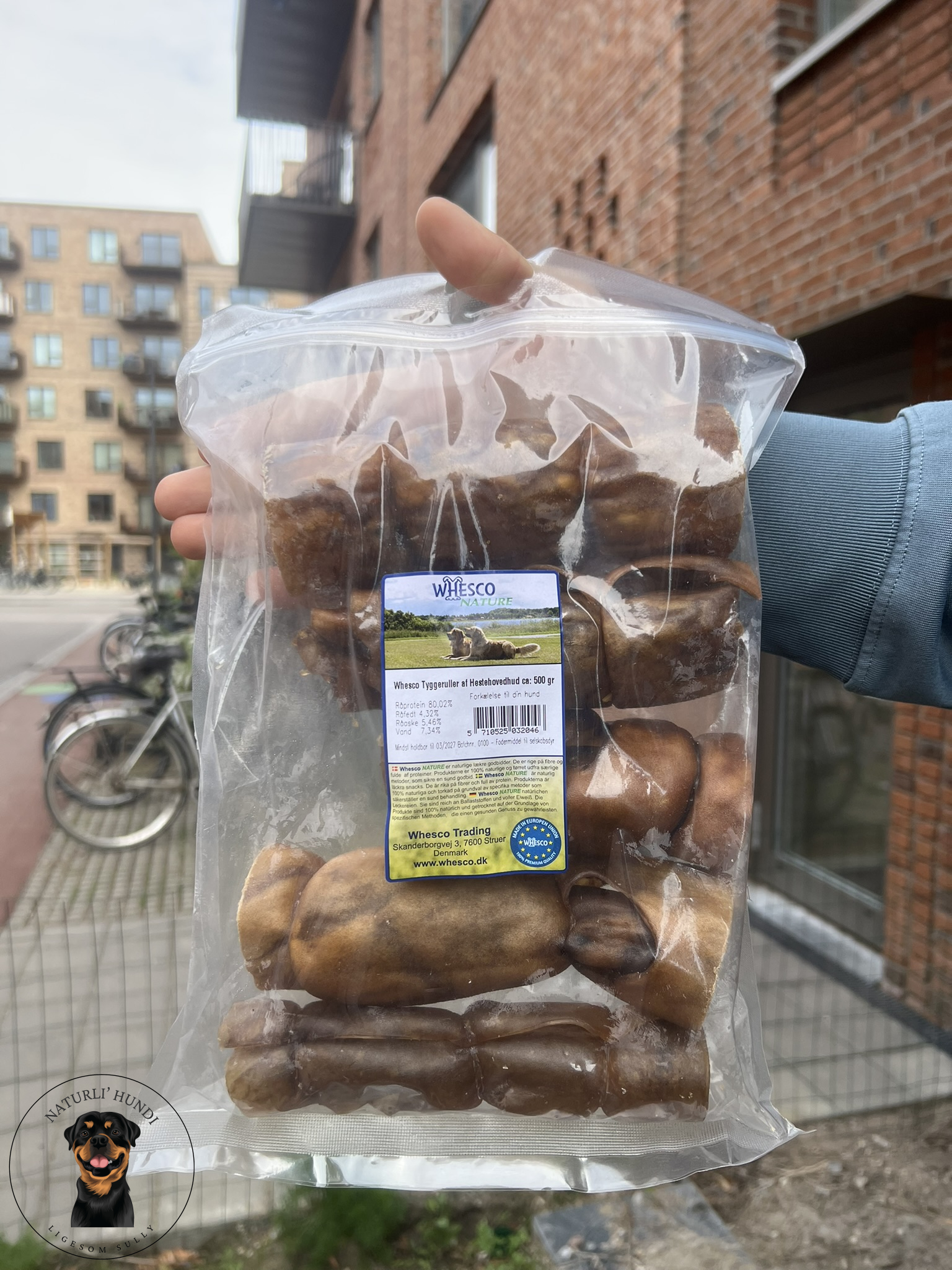 Whesco Tyggeruller af Hestehovedhud (500 g) er en naturlig, lufttørret tyggegodbid, som både aktiverer og plejer din hunds tænder 🐶🦷