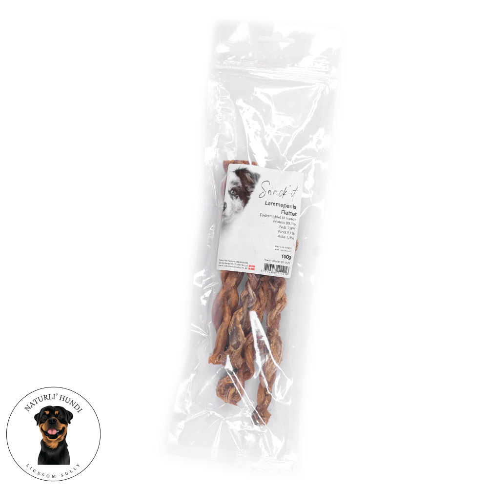 Snack'it Flettet Lammepenis er en naturlig og smagfuld snack, der kombinerer høj tyggeværdi med god fordøjelighed 🐾