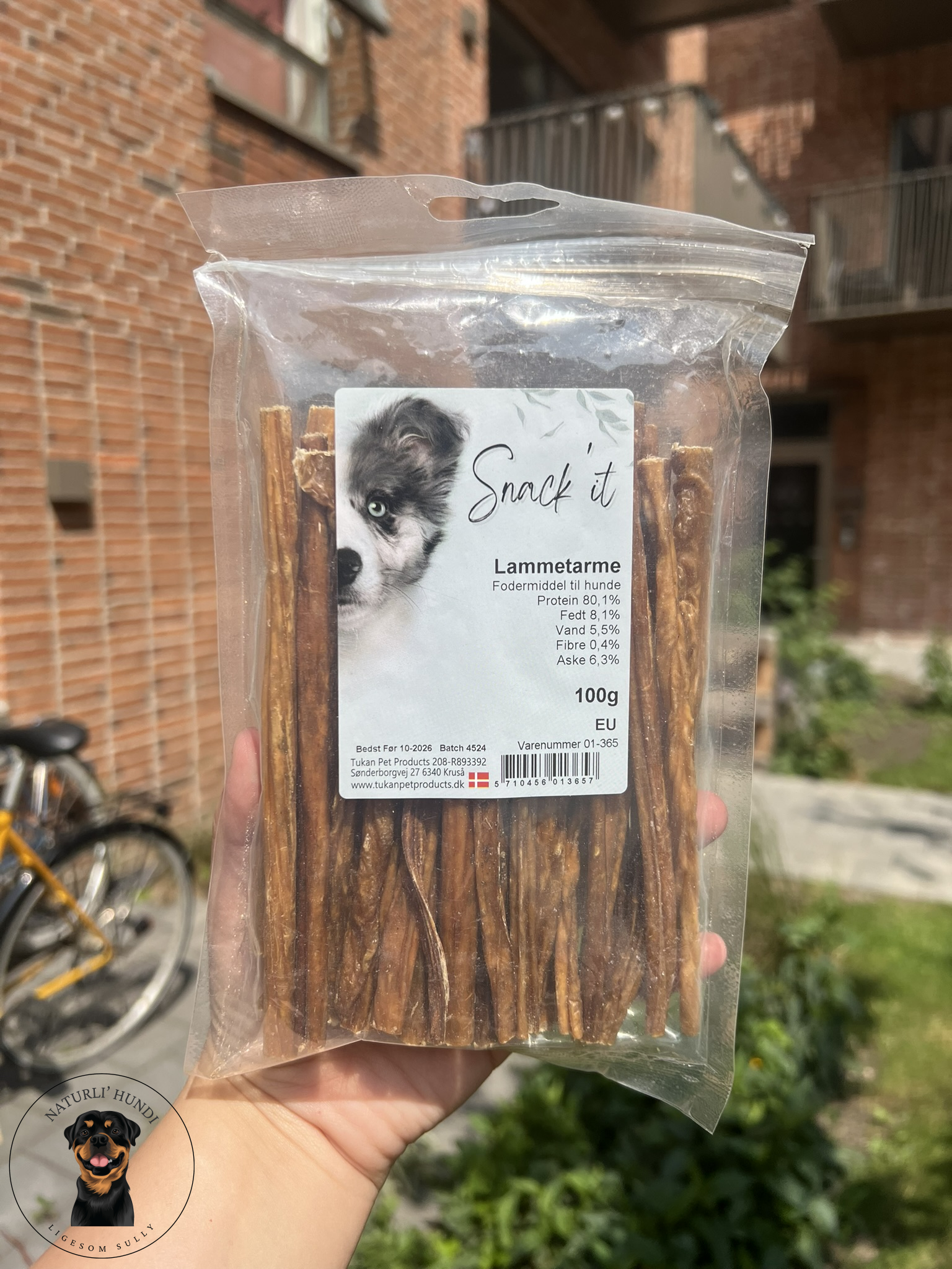 Snack'it Lammetarme Spaghetti er en lækker, naturlig snack lavet af ren lammetarm – sprød, smagfuld og letfordøjelig 🐶