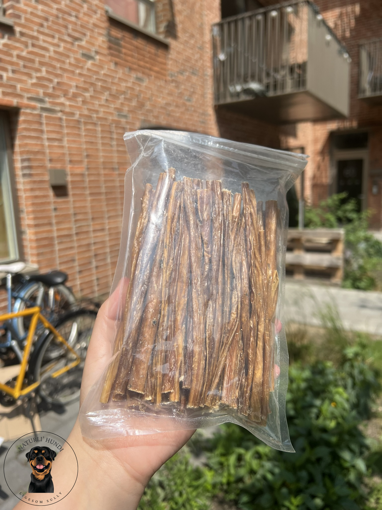Den spaghetti-lignende form gør den nem at knække i mindre stykker og perfekt til træning, belønning eller bare lidt forkælelse i hverdagen 🦴
