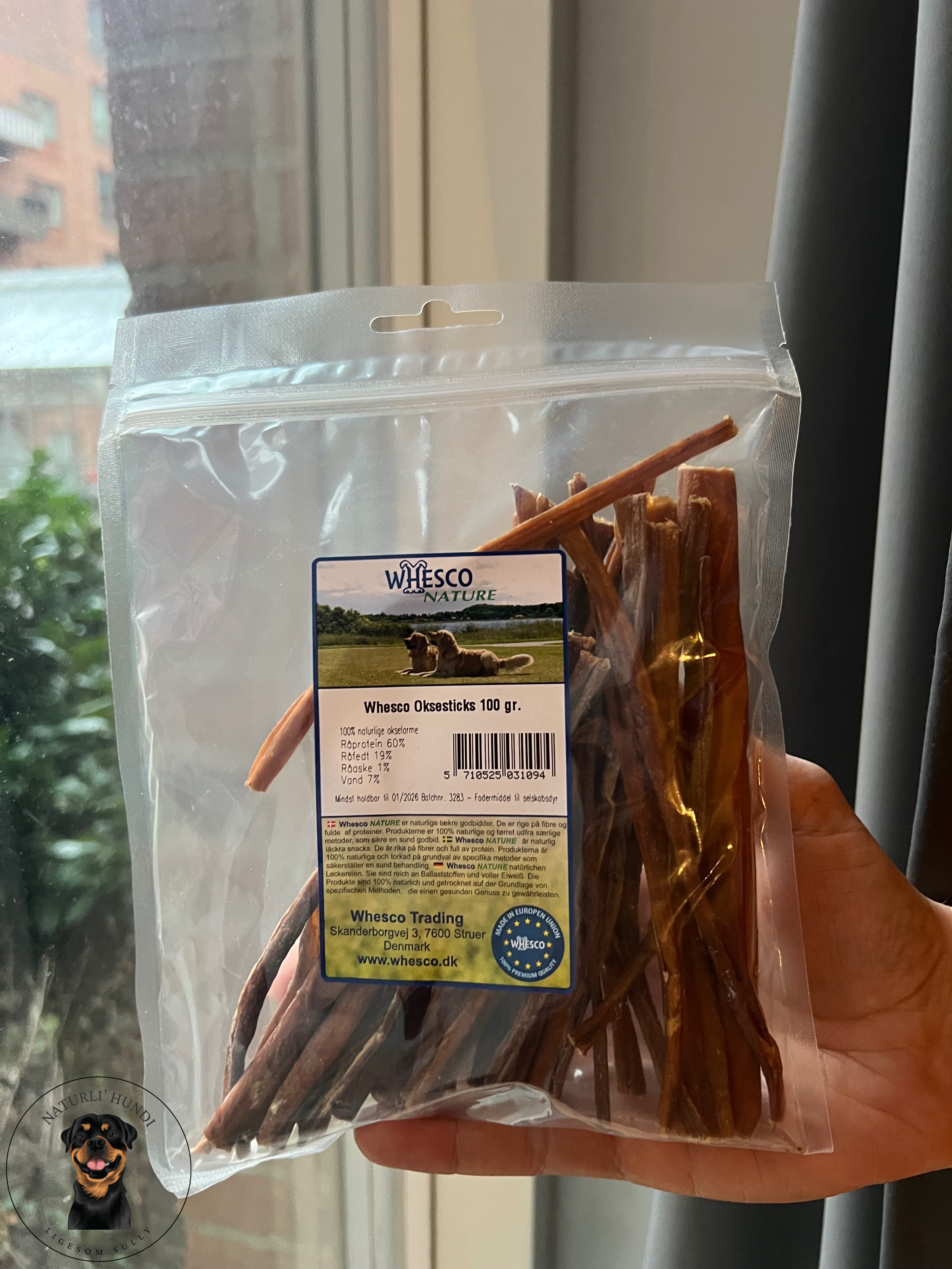 Whesco Oksesticks (100 g) er en naturlig og nærende snack, der passer perfekt til alle hunde 🐾. Fremstillet af 100% tørret oksekød, uden kunstige tilsætningsstoffer eller konserveringsmidler 🌿.
