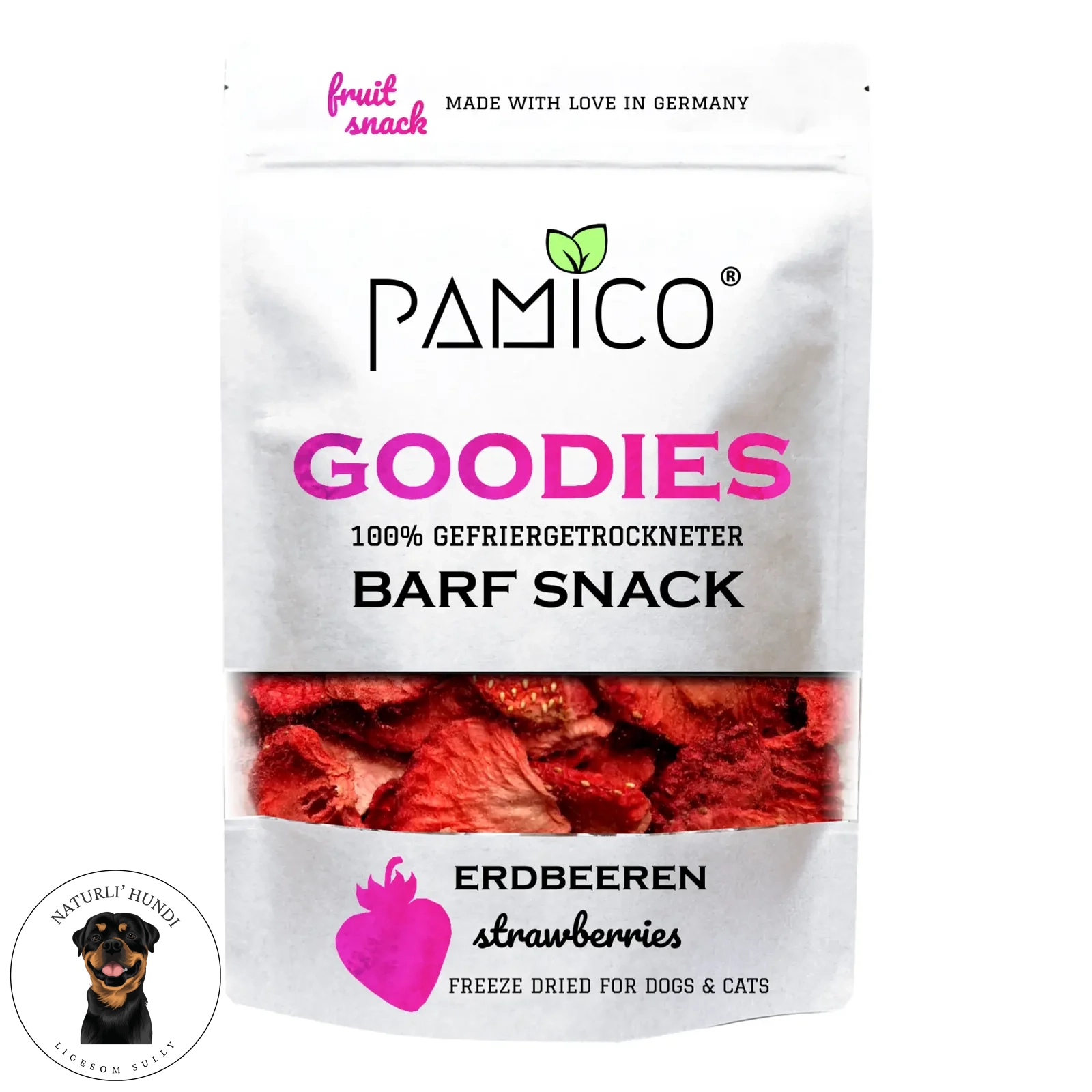 Den skånsomme frysetørring bevarer jordbærrets intense aroma, farve og næringsstoffer, så dit dyr får ren frugt – helt uden tilsætningsstoffer, sukker eller fyldstoffer. 🍃✨