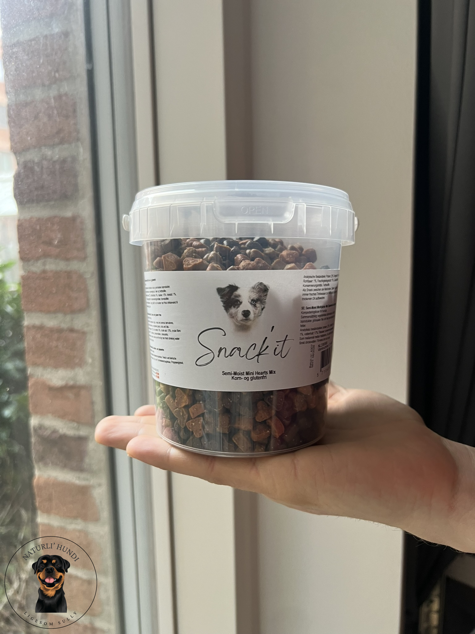 Snack'it Semi-Moist Mini Hearts Mix (500 g) er en samling af bløde, smagfulde hjerteformede godbidder, der er perfekte til træning, belønning eller som en lille forkælelse mellem måltider 🐾. Disse godbidder er korn- og glutenfri🌿.