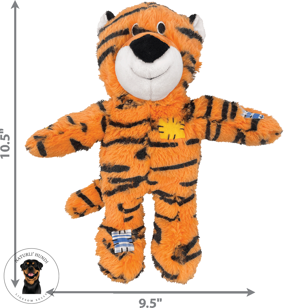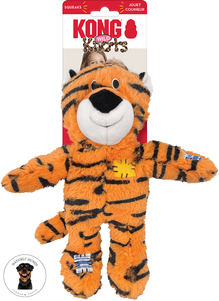 🐅 KONG Wild Knots Tiger er den perfekte kombination af sjov og komfort! På ydersiden er det en superblød og nuttet tiger – men indeni gemmer den på et robust reb-skelet, som styrker holdbarheden og samtidig stimulerer hundens naturlige lyst til at tygge.