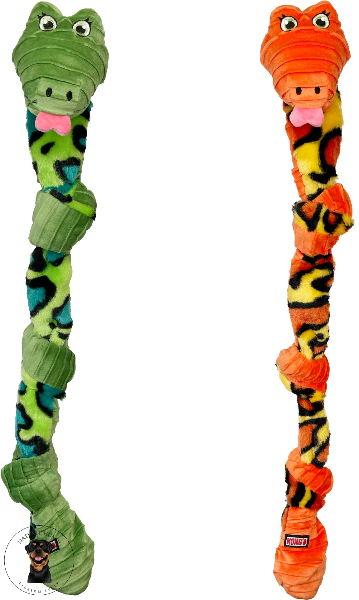 KONG Knots Snake er skabt til sjov bevægelse, interaktion og masser af leg – og er samtidig blød nok til hyggelige øjeblikke.